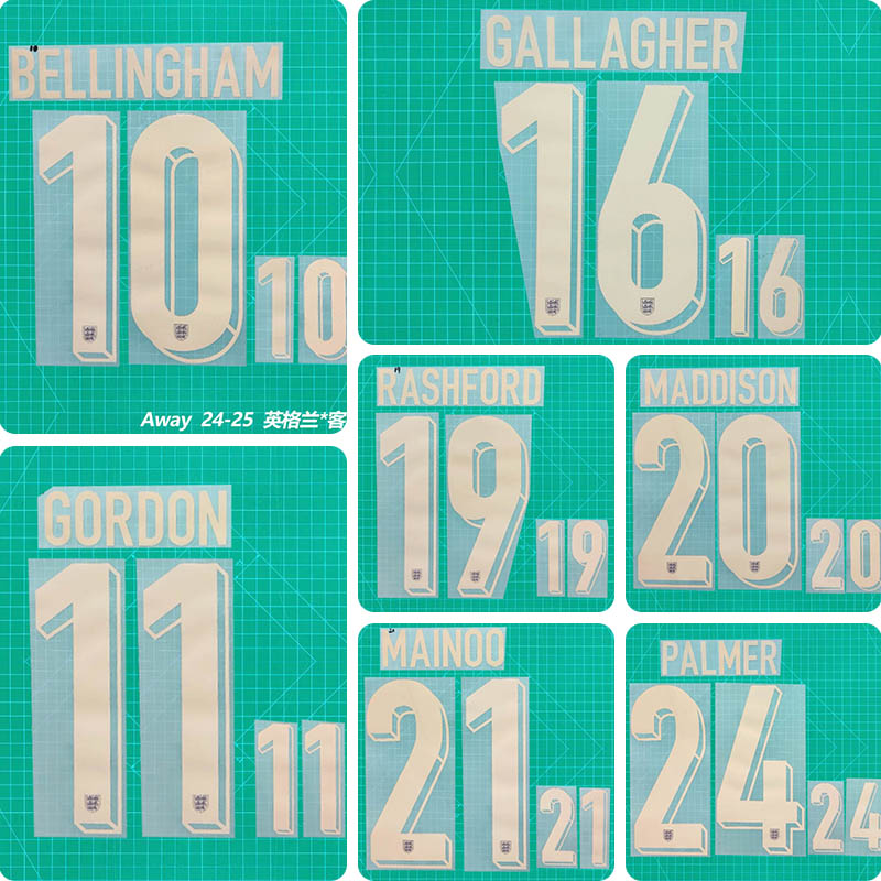 Football Idol Numbers 2024 England Away BELLINGHAM Football Jersey Number MADDISON Team numbers and names