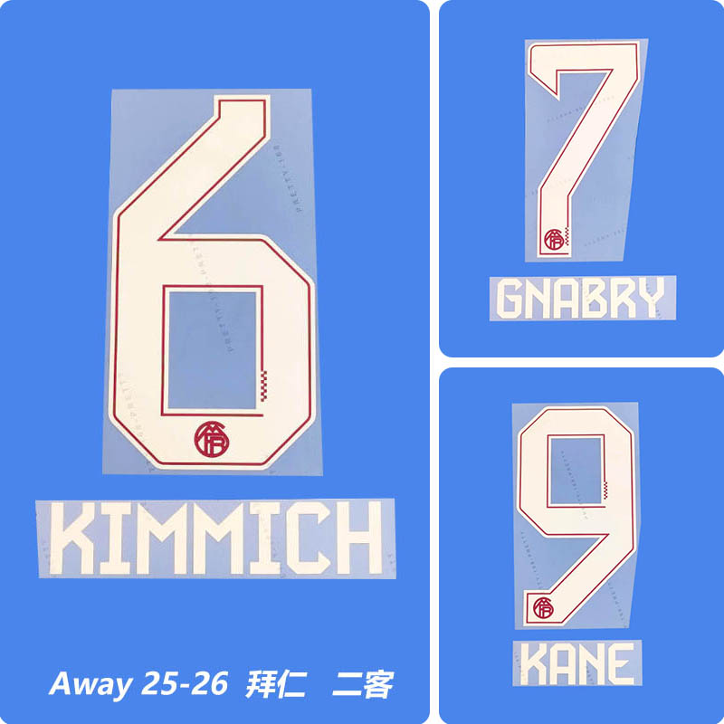 Football Idol Numbers 25-26 Bayern Munich Away II KANE Football Jersey Number KIMMICH Team numbers and names