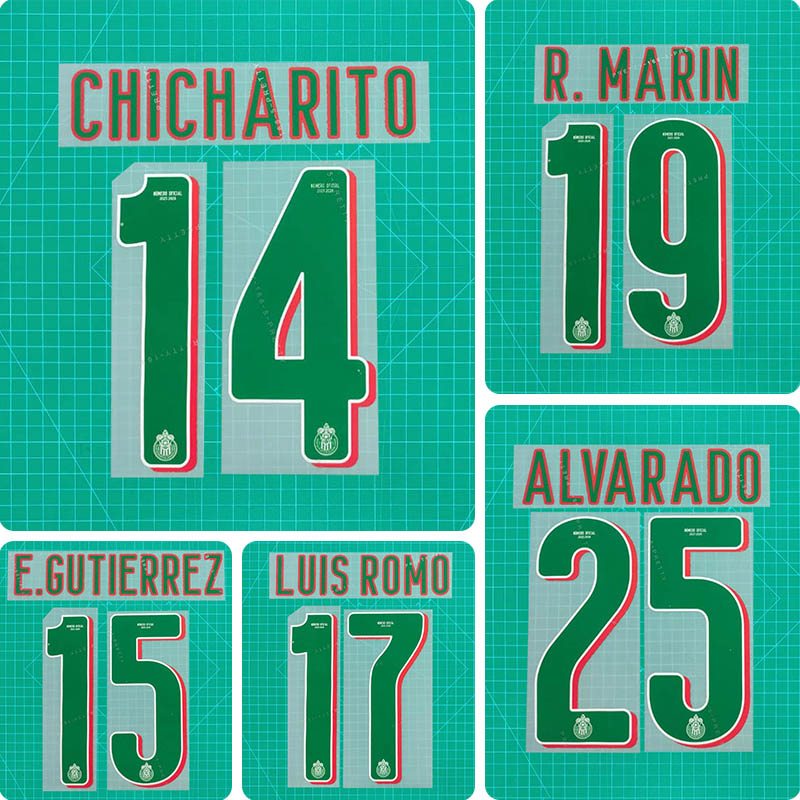 Football Idol Numbers 25-26 Chivas Guadalajara Away CHICHARITO Football Jersey Number E. GUTIERREZ Team numbers and names