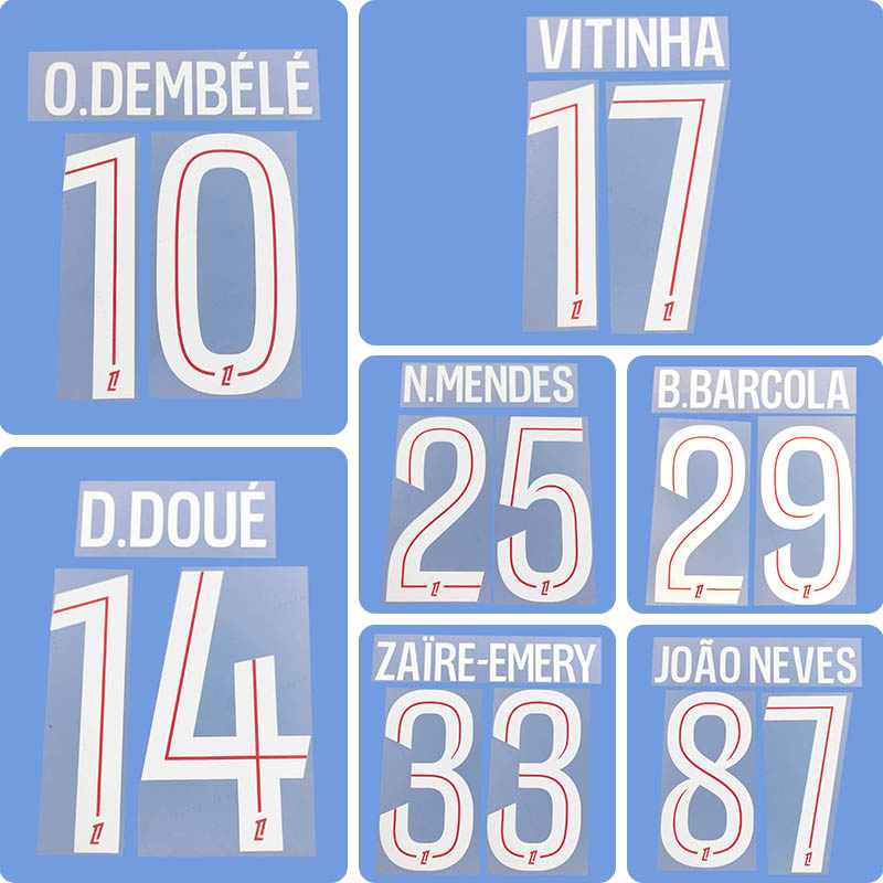 Football Idol Numbers 25-26 PSG Paris Home O.DEMBELE Football Jersey Number D.DOUE Team numbers and names VITINHA